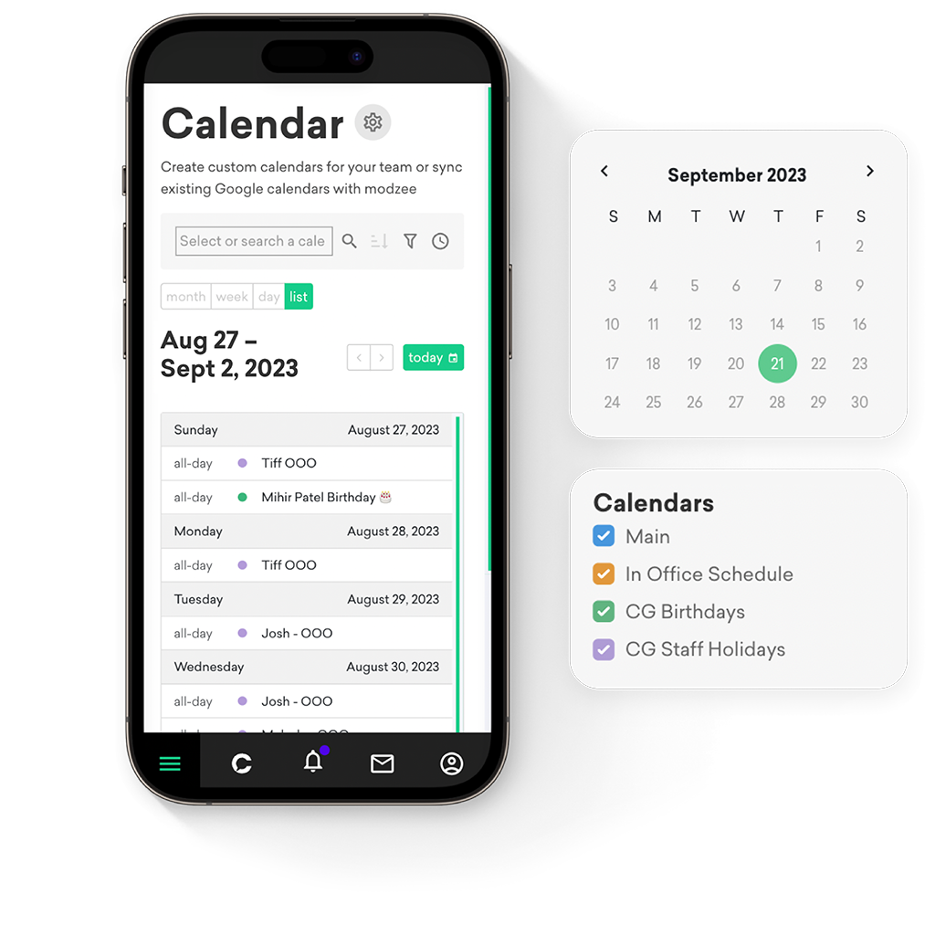 Calendar: Unlimited calendar setups & Google Calendar integration.