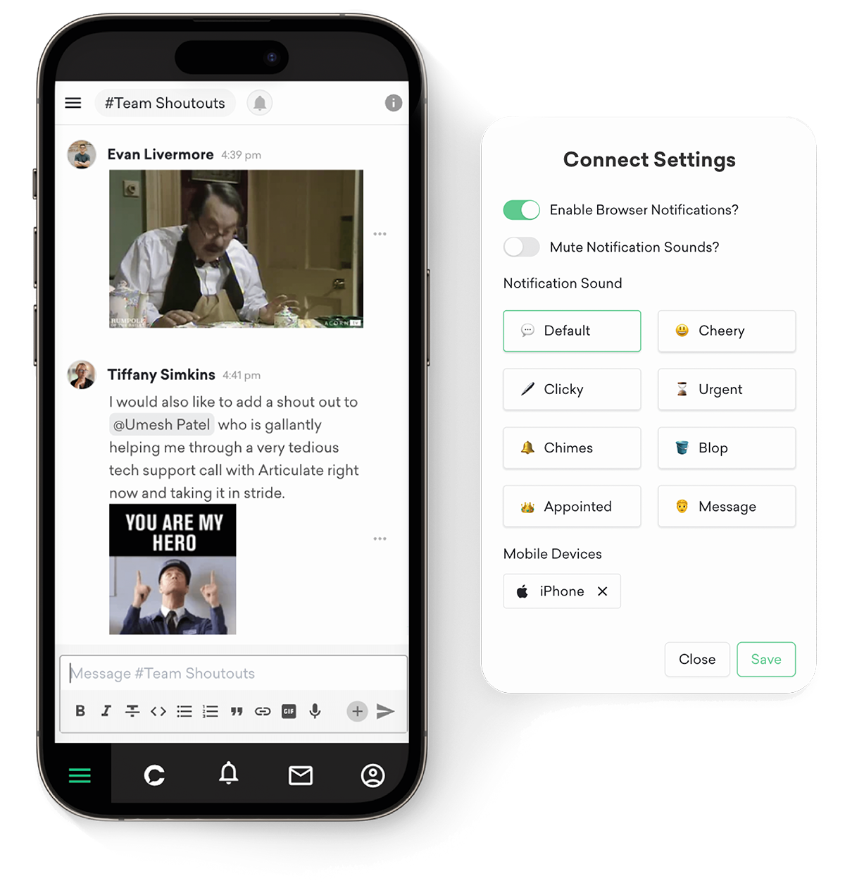 Text, audio or whiteboard, stay on top of things in the way that works for you with templates for efficiency. Share with anyone in your network.