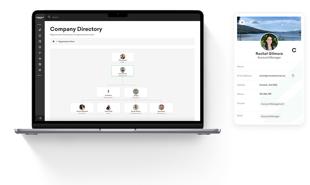 Company Directory: Immediate visibility on who does what and reports to whom in each department.