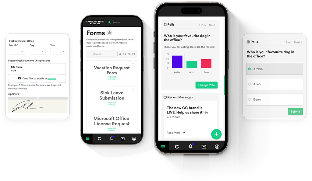 Forms, Polls & Surveys: Form builder and organizational polls and surveys.